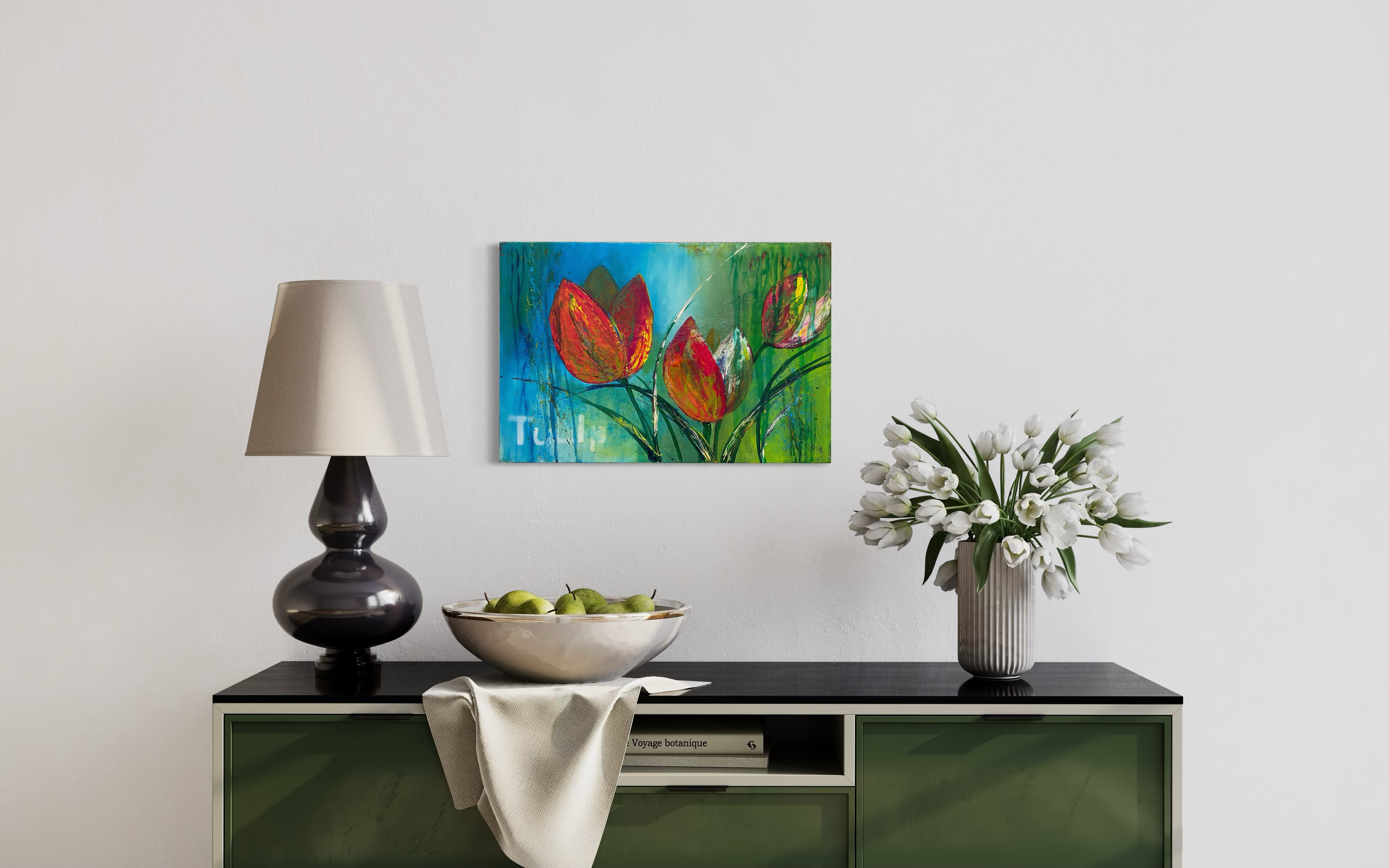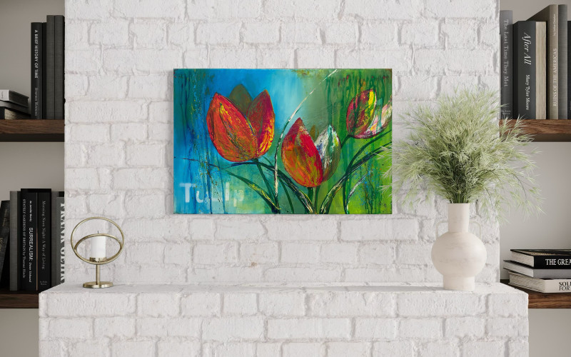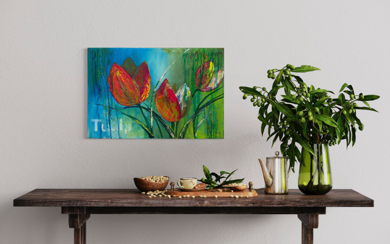 Ich finde, Tulpen gehen immer und der Frühling kann nicht lang genug sein, um ihre Pracht in Parks, Gärten und der Vase zu genießen. Mit diesem Bild hast du sie das ganze Jahr an deiner Wand. Ein Muss für Tulpenfans.