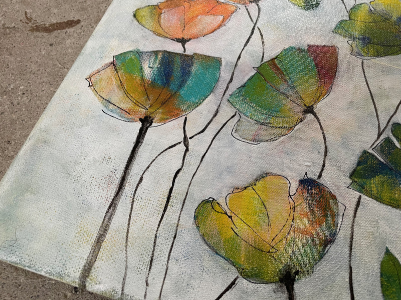 Papaver Mohn - so vielfältig in Form und Farbe wogend im Wind und ihm trotzend. Allen eins sind die zarten Blätter, durch die das Licht scheint und viele Farben offenbart.Acryl - Mixed Media - Leinwand auf Keilrahmen Abmessungen Breite: 60 cm, Höhe: 40 cm Dicke: 2 cm 245 € Verfügbar Besichtigungs-/Kaufanfrage Email Telefonnummer Name Nachricht