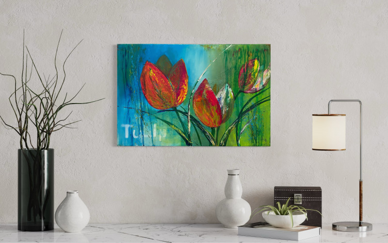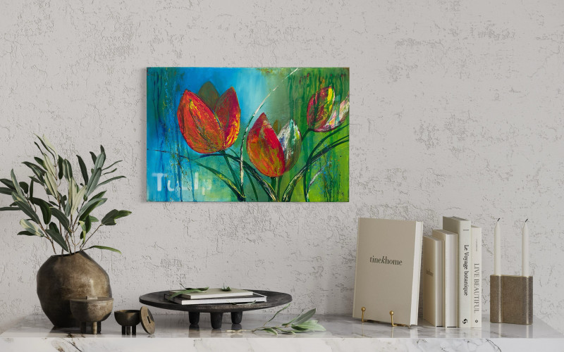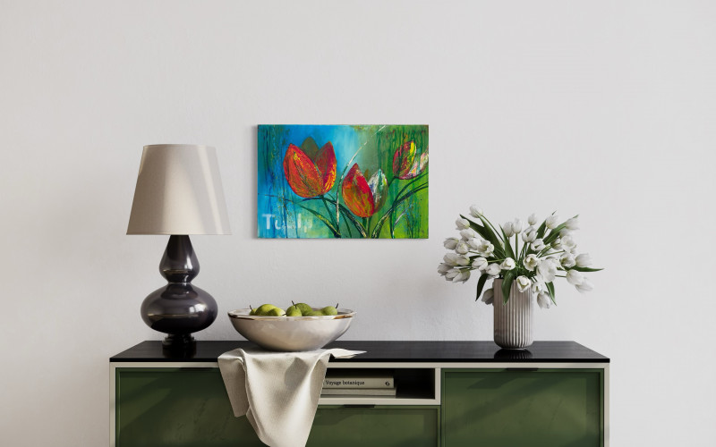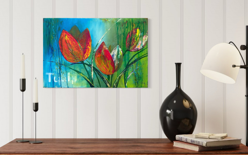 Ich finde, Tulpen gehen immer und der Frühling kann nicht lang genug sein, um ihre Pracht in Parks, Gärten und der Vase zu genießen. Mit diesem Bild hast du sie das ganze Jahr an deiner Wand. Ein Muss für Tulpenfans.